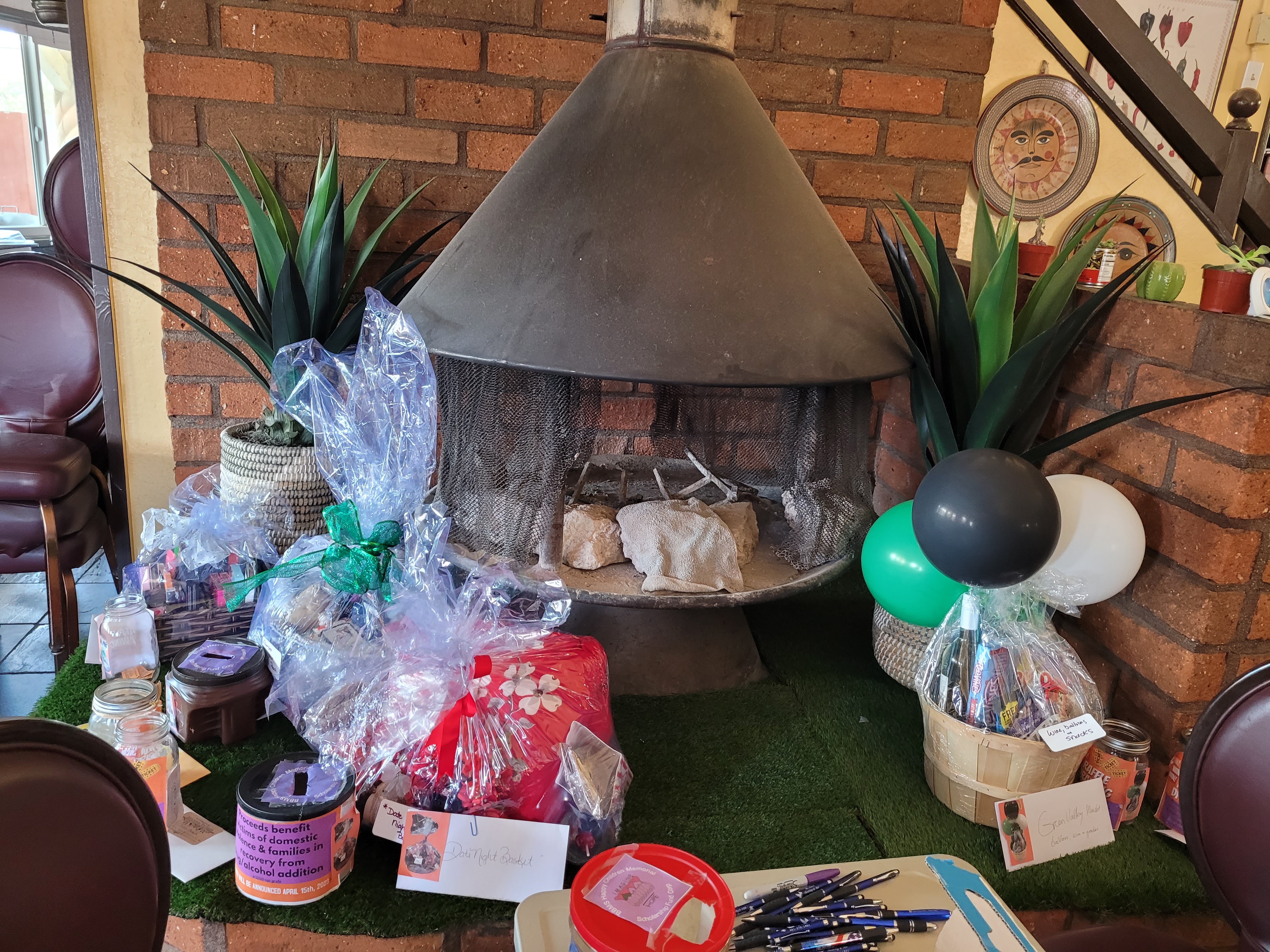 Casa Gutierrez donated two gift certificates for a meal for two – These were won by Cheri Thompson & Cindy Lindaman. The “Never Too Much Makeup basket” donated by Shanna Venezuela, was won by Mayra. The “Date Night” basket, donated by Cindy Lindaman, was won by Cathy Chapman. The Cheesecake Gift Certificate was won by Janice Eernissee. The Pampered Pooch Basket was donated by Robin Smith, and won by Glen & Rosie McConnell. The Mountain Top Gift certificate, donated by Tanya Duron, was won by Blanca. “A Place To Shoot” gift certificates were won by Patrick Baxton, Krista, and a non-local who was lucky enough to be at the restaurant at the right time.