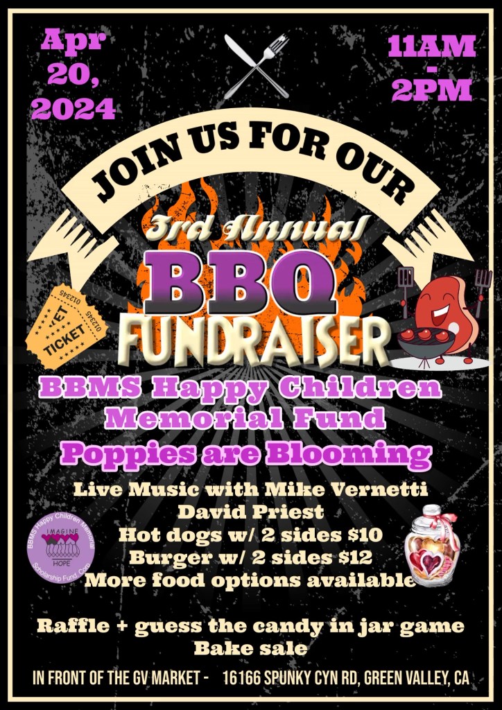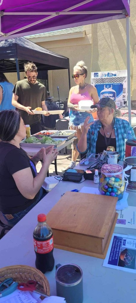 Thank you, Green Valley Market, Raymond and Kimberly Hannoun, for allowing us to have your fundraiser at your market and donating burger buns and hot dog buns. Thank you, Luis Guiterrez, from Casa Guiterrez, for donating burgers and fixings. Thank you, Robert and Jamie McCormack, for donating your time and cooking the burgers, hot dogs, and chili burgers. They were delicious. Thank you, Robin Smith, for donating potato salad, Teresa Leona, for donating coleslaw, and Dylan Smith, for donating mac n cheese and coleslaw. Thank you, Flo Bistline, for donating baked goods, and Auntie Em, for donating specialty baked goods. They were delicious.