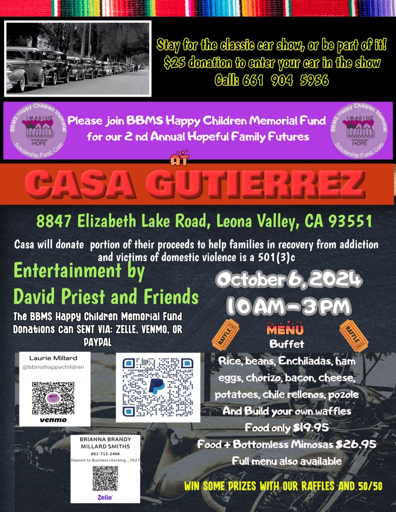 If you cannot attend, you can donate through Zelle, Venmo, or Paypal. Anything you can give is appreciated. Please call 661 904 5956. Hope to see you there.