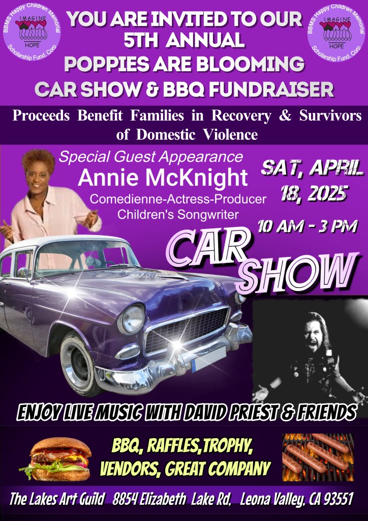 On April 18, 2026 in Leona Valley, Ca., BBMS Happy Children Memorial Fund will be hosting a BBQ Carshow from 10-3. Winners will recieve trophies and gift certificates to Hoopers Rearends and other merchants.