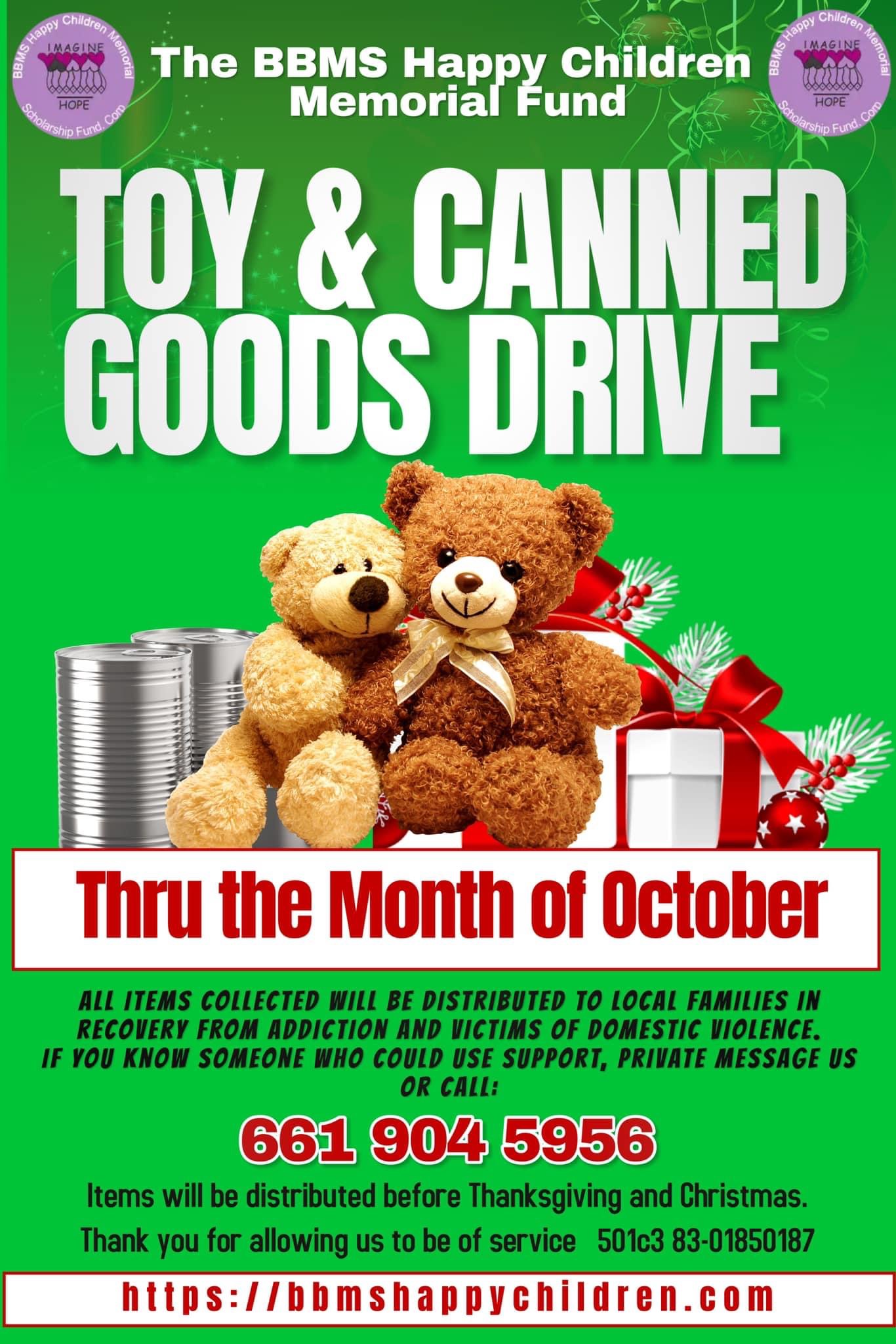 In the months of October and November, the BBMS Happy Children Memorial Fund will be collecting canned goods, toys, gently used coats and blankets. These items will distributed to local families in recovery from addiction and victims of domestic violence. Many of these families are in need of nonperishable items. In addition, toys will alsoContinueContinue reading “Donate Canned Goods & Toys for Families in Need”